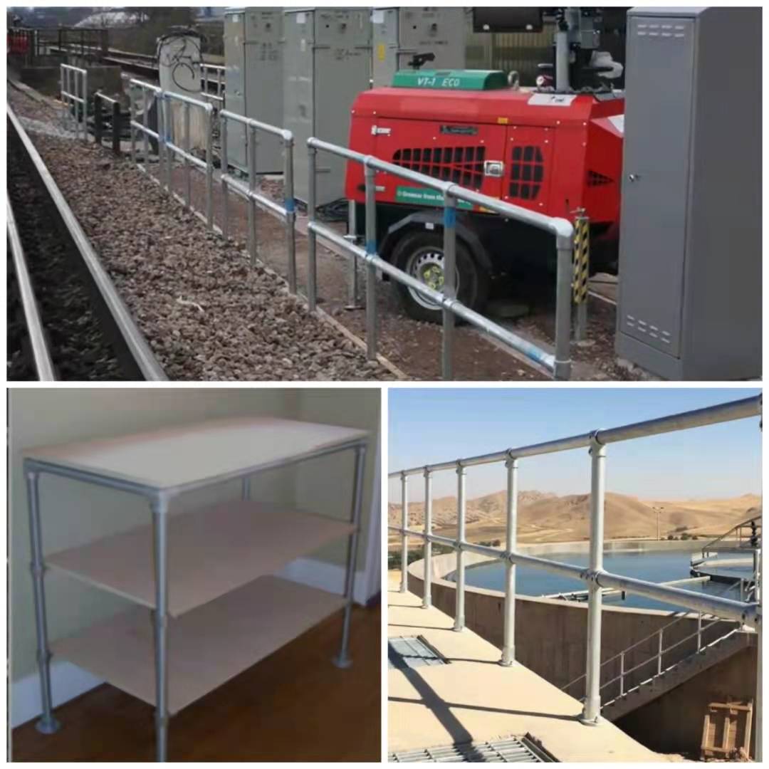 Malleable iron pipe clamps fittings used to connect steel tubing, different rang of fittings can combined with standard tubing enables the users to create any structure imaginable for use in all manner of industries, such as handrail fittings ,shelving ,outdoor sport, monkey bars and more .Instead of the orginal welding method, the tube can be quickly connected with only a simple allen key, which is more simple and convenient.